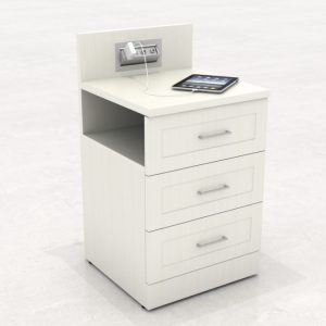 Custom 100 Series 3 Drawer Bedside Table with Extended Back Panel and Power Housing Intellicare Furniture