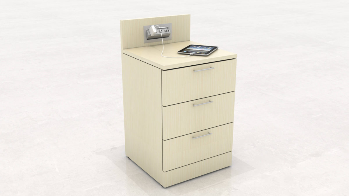 The 100 Series Bedside Table with 3 Drawers and Custom Power Module is a versatile and practical addition to any bedroom, offering both generous storage and the convenience of integrated power access. This bedside table is designed to meet the needs of modern living, combining functionality with a sleek design.