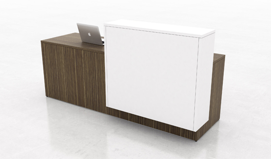 Each desk features a custom cutout design, thoughtfully engineered to provide a seamless interface between the receptionist or intake staff and the visitors. The cutout not only adds an element of modern design but also ensures that interactions are smooth, accessible, and comfortable for everyone involved. The cutout’s dimensions are carefully considered to maintain privacy while still allowing for effective communication.